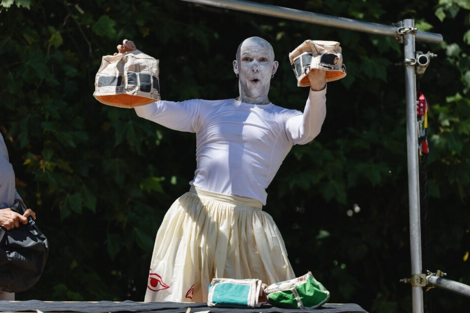 Presented at the Mela, in collaboration with Art Asia, Holy Dirt weaves together movement, sound and storytelling to explore the deep, spiritual connections to the land beneath our feet. Holy Dirt is a vibrant, funny and beautifully episodic performance that playfully explores the mythic feminine as she struggles ridiculously through our climate catastrophe – she stumbles, she dances, she transforms. Clay, stones, water, and sand erupt across the space in a visually startling performance set to a rich global soundscape—where the rawness of earth converges with myth and ritual.